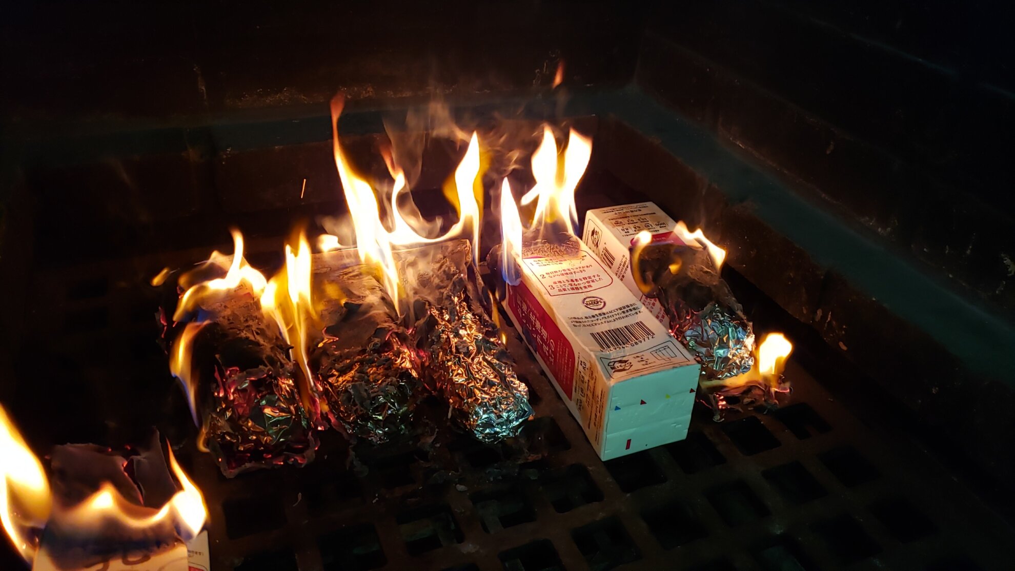 牛乳パックが燃え尽きるまで待つと・・・