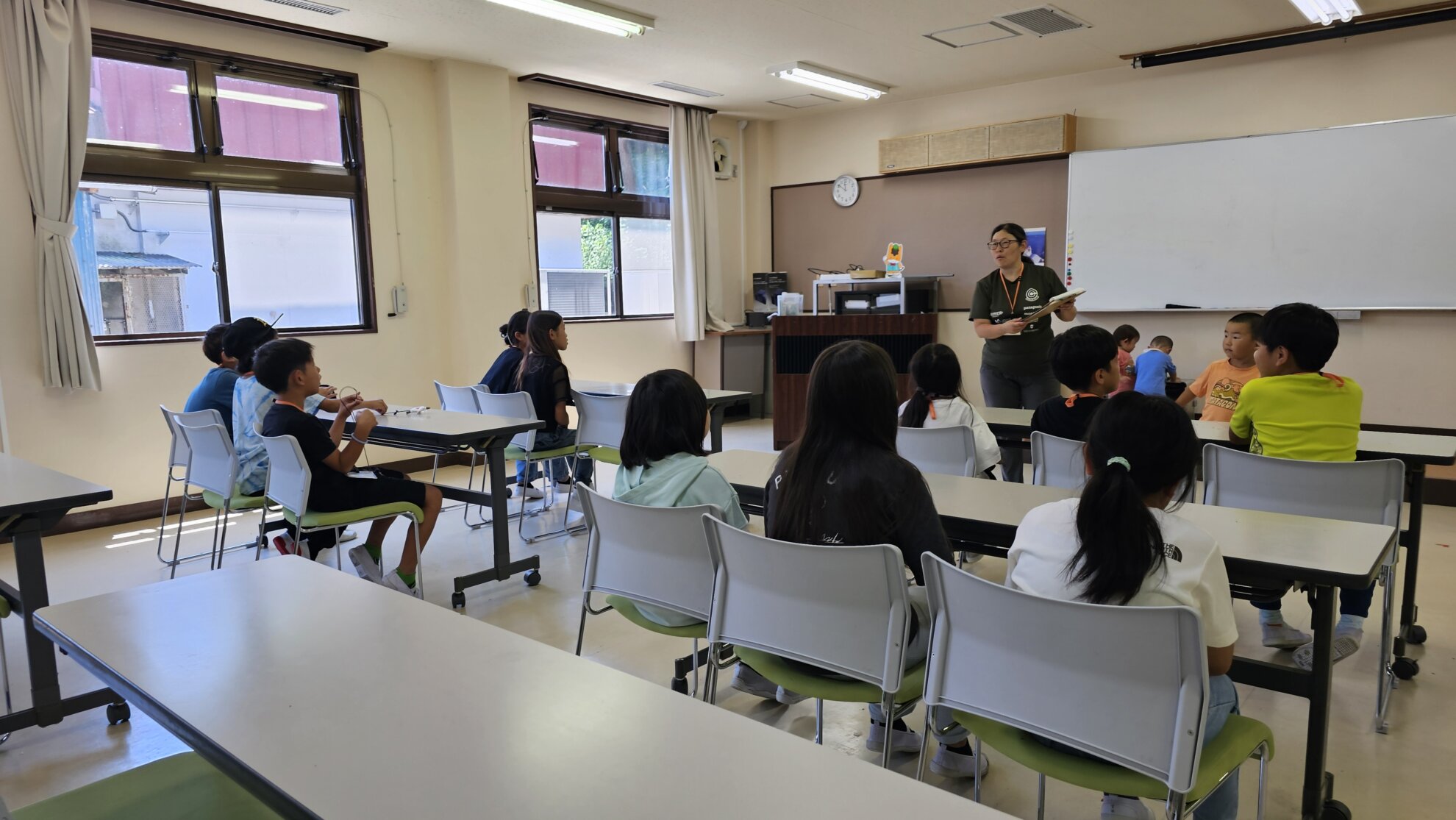 「朝のつどい」。3日目とあって、みんな眠そうですが、体調は?!(*^^*)b