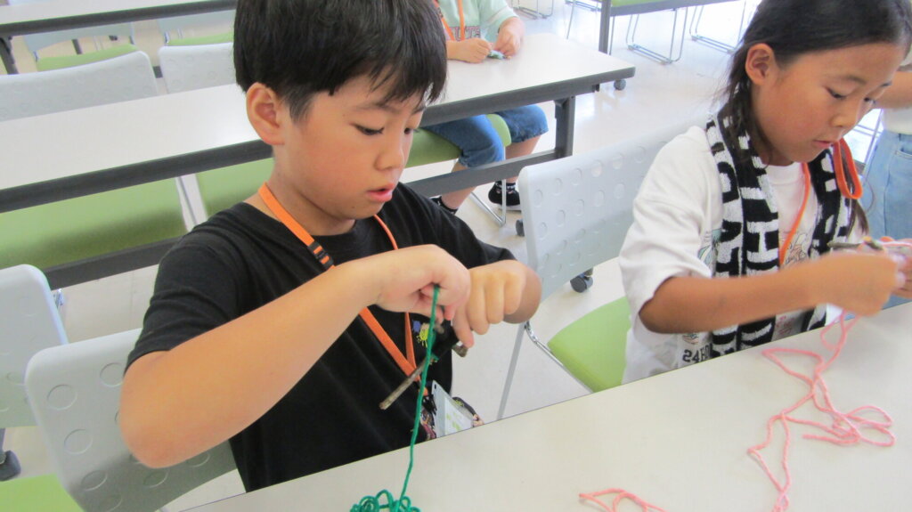 毛糸の巻き方を教わりながら、コツコツと巻いていきます。