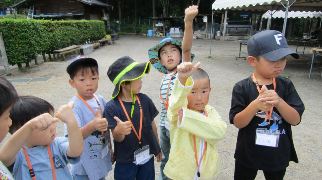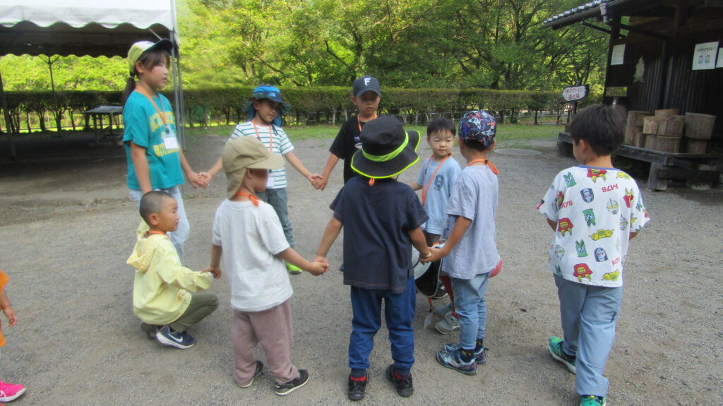 屋外に出て「朝のつどい」をおこないました。身体を動かすゲームをしたり・・・