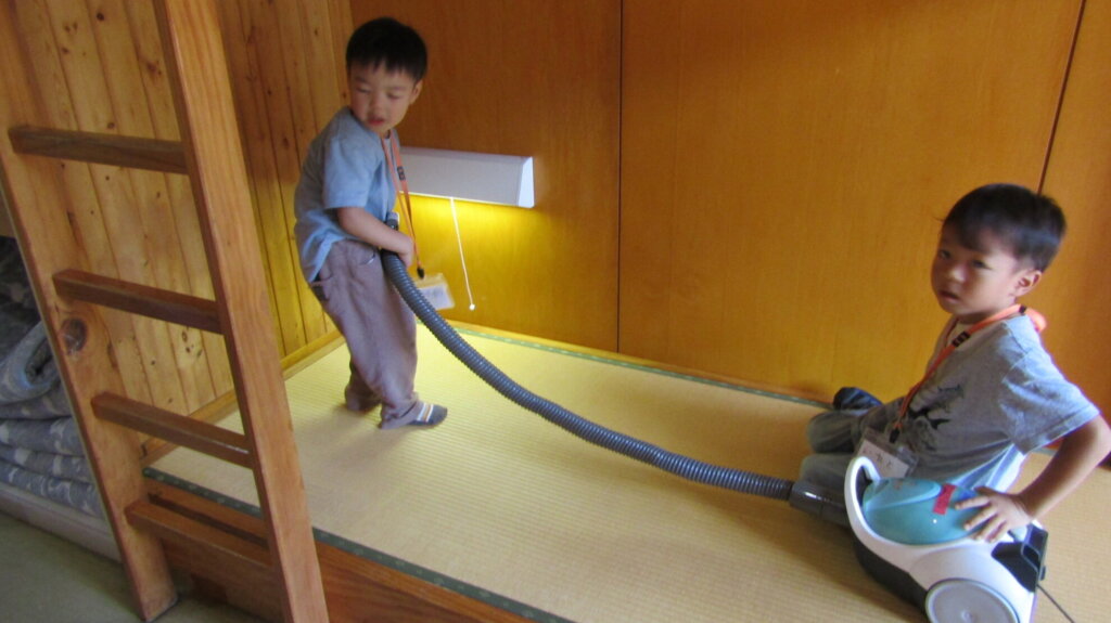 布団を畳んだりしたら、自分たちが使った部屋の掃除をしました(*^^*)