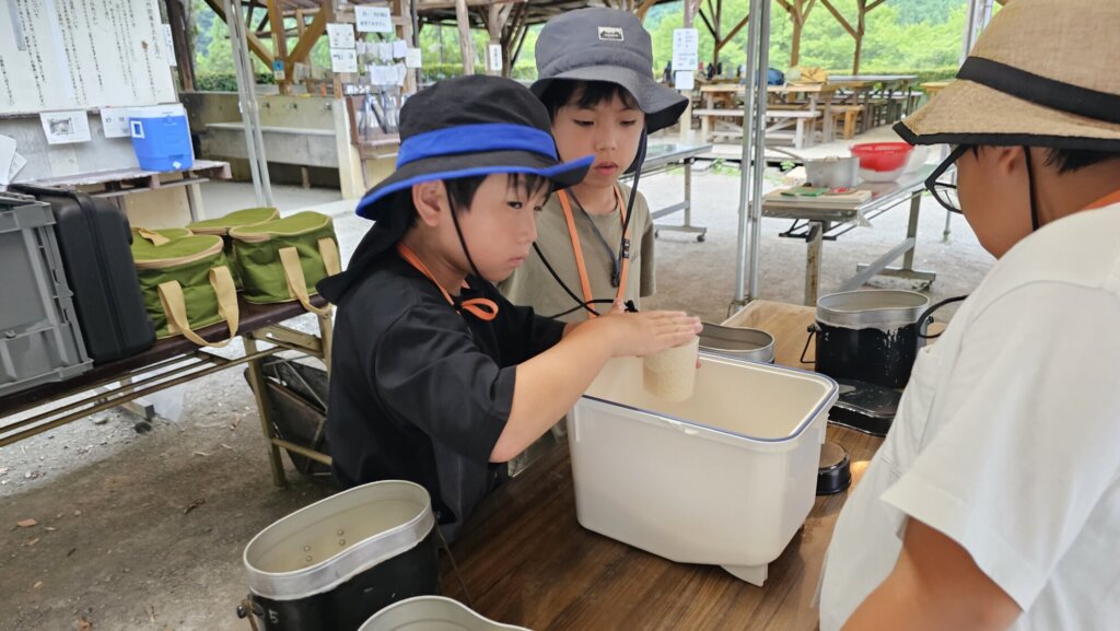 お米をこぼさない様に注意しながら・・・お米をとぎます。