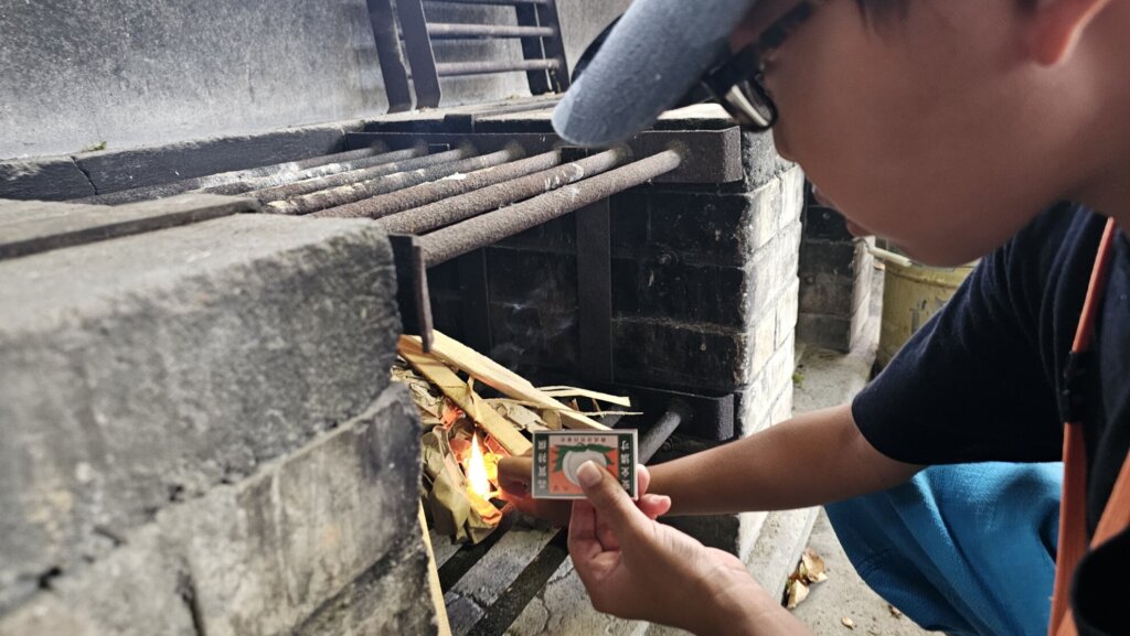 薪が組めたらマッチを擦って火をつけたら、炎を育て