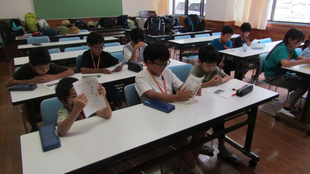 しおりを配布して3日間の活動内容や生活でのルールやマナーなどを確認しました。