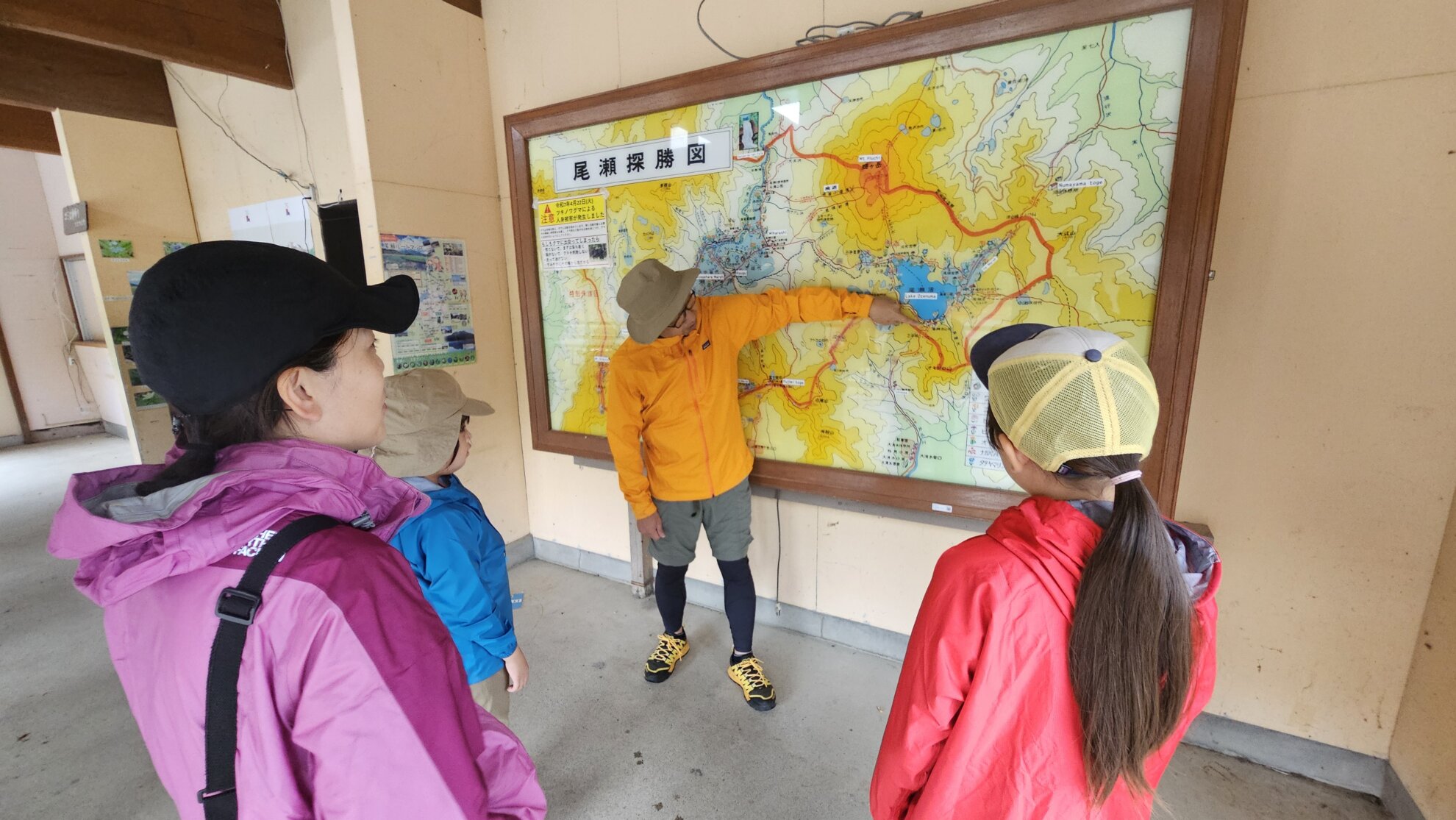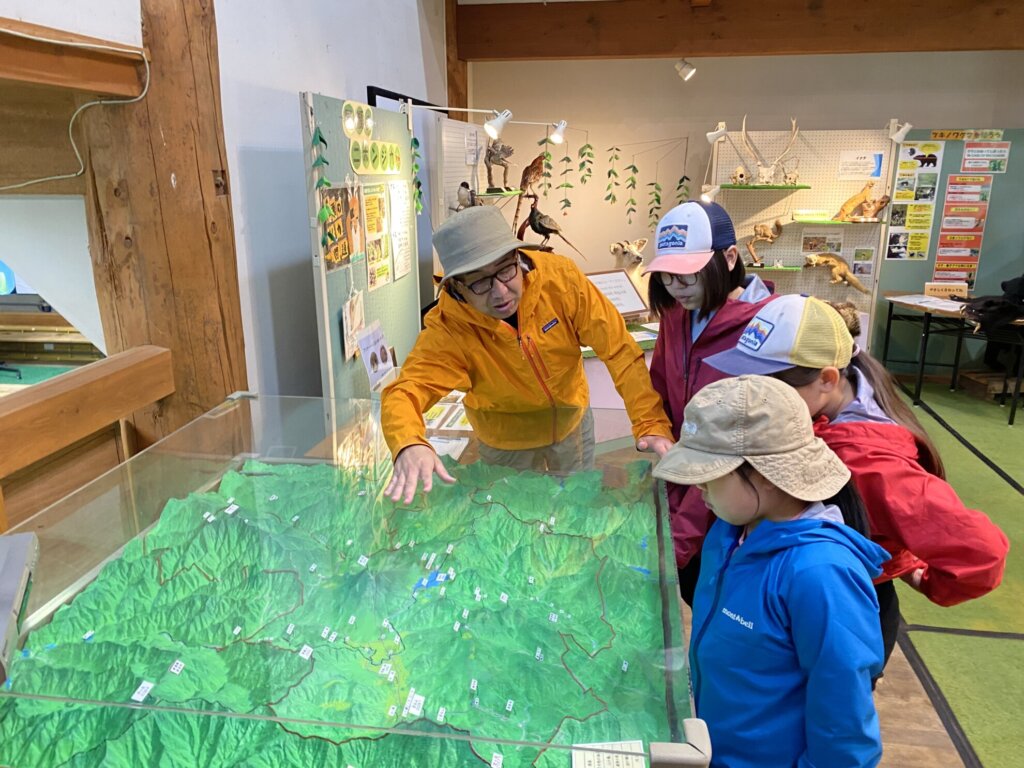 山の鼻ビジターセンターを見学。歩く場所を3D地図で確認したり