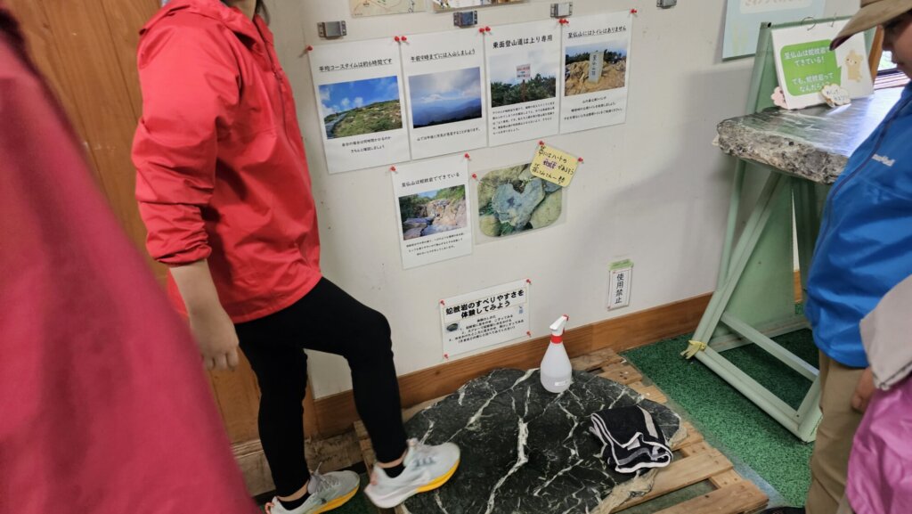 山の鼻地区から登ることの出来る「至仏山」の石の特徴を体感したり