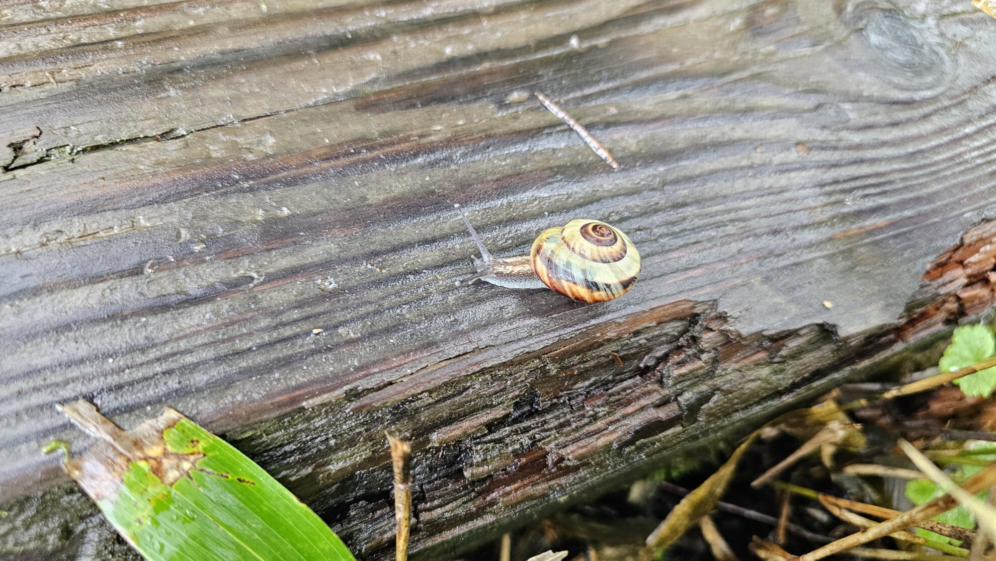 雨に濡れる木道にはカタツムリも^^;