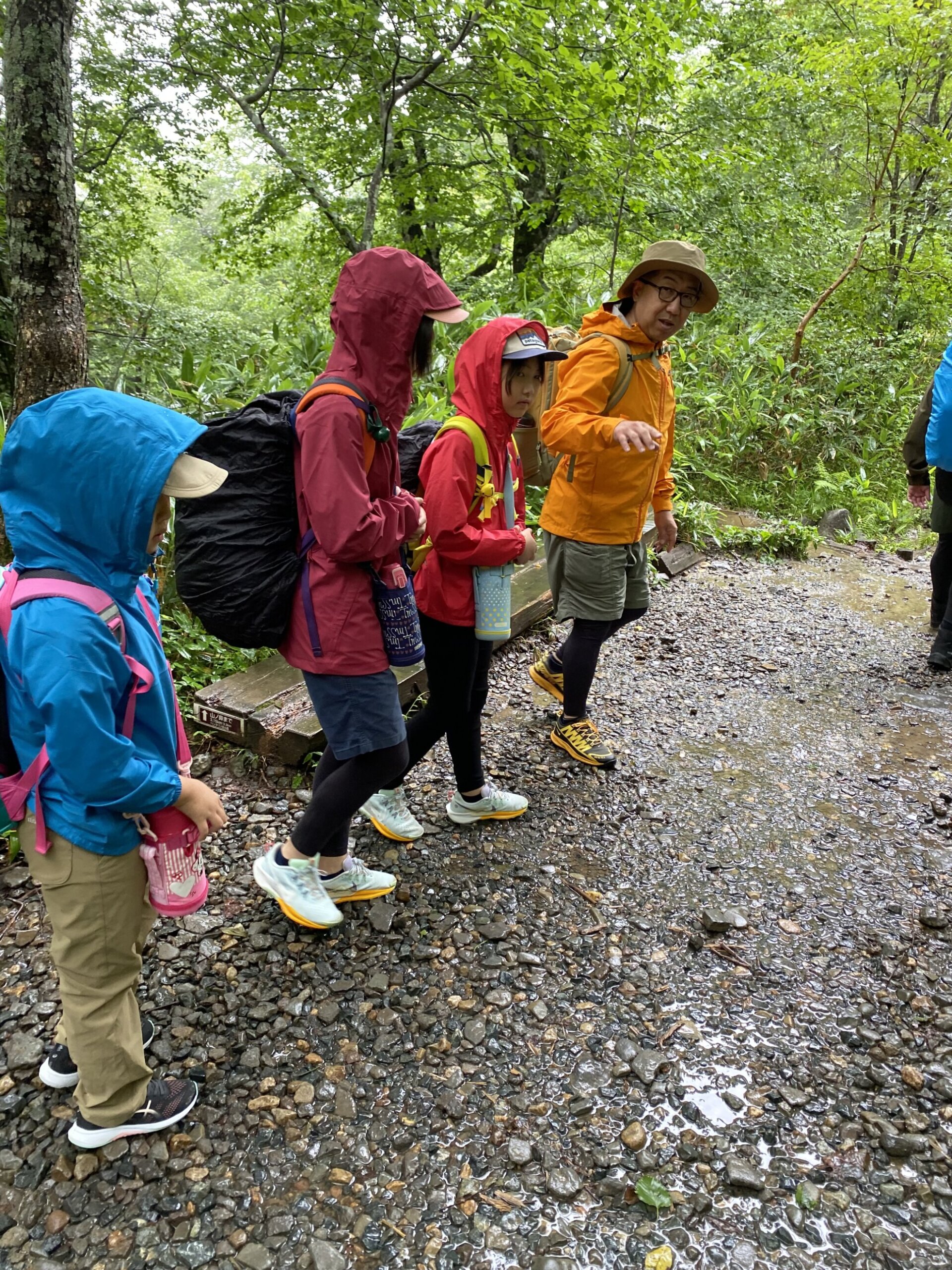 下りの木道や石畳はとても滑りやすく、注意しながら下っていきます。