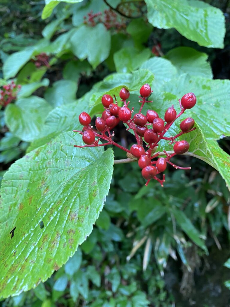 青々とした森に映えるオオカメノキの実