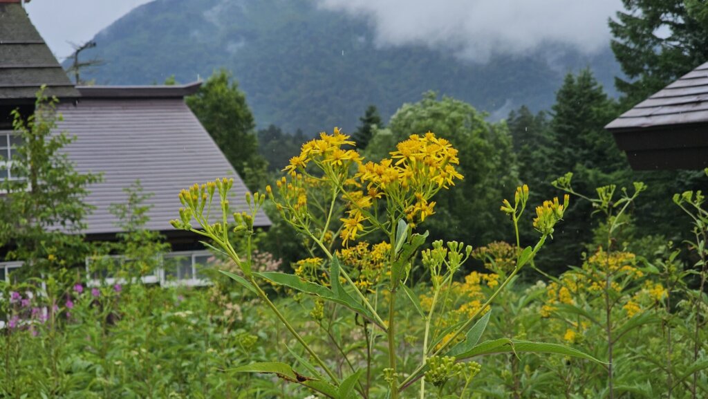 尾瀬沼湖畔にある山小屋に集落では「ノアザミ」