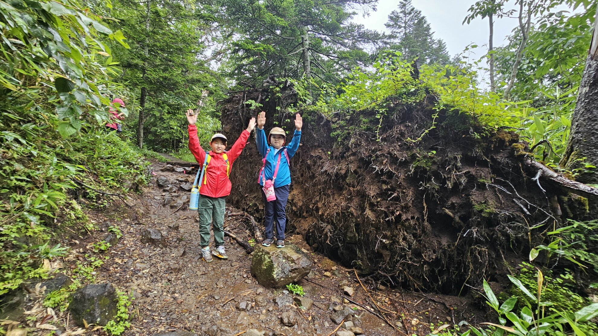 すると「大きな壁が!」大樹が広範囲に根を広げたまま倒木となっていました
