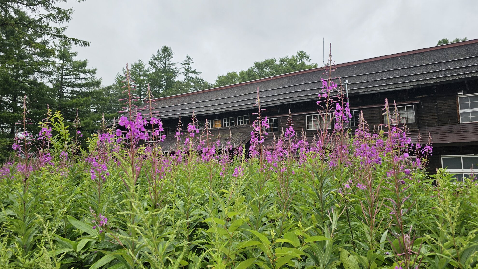 尾瀬沼湖畔にある山小屋に集落では「ノアザミ」