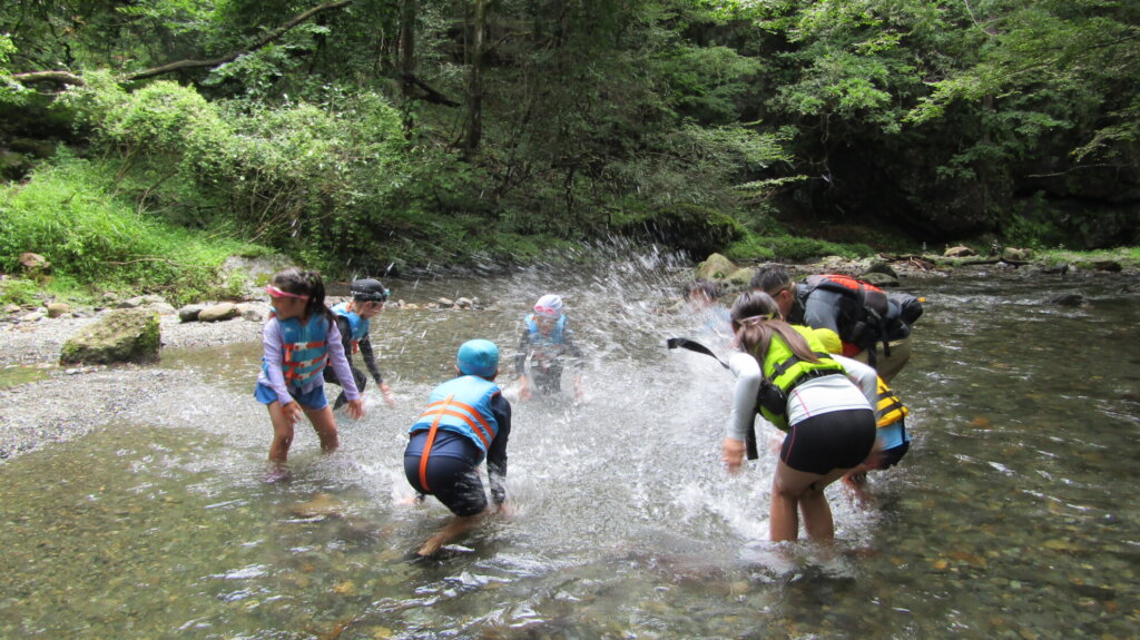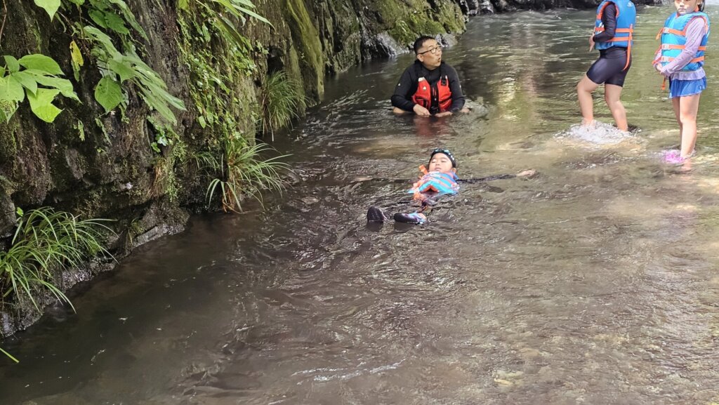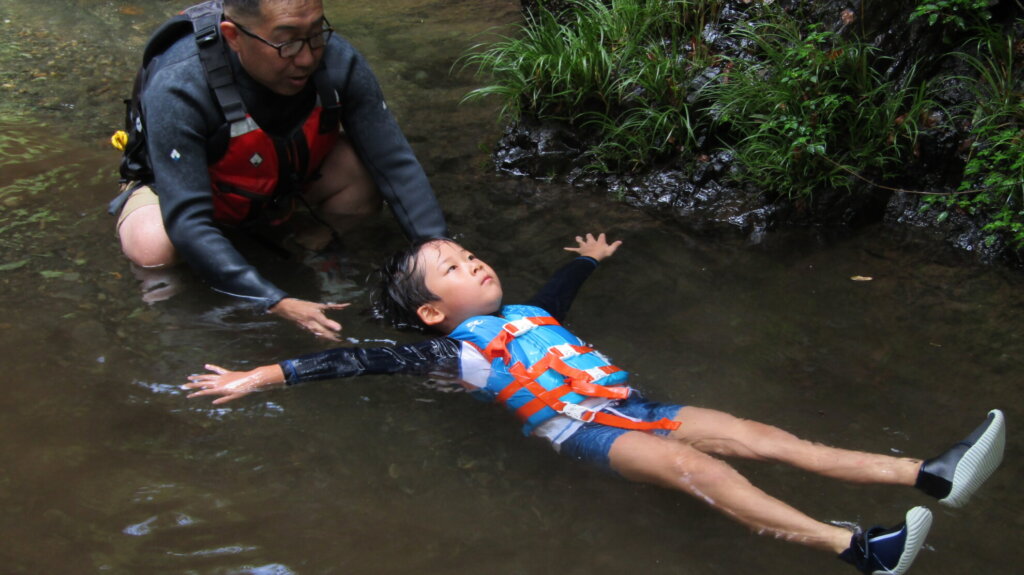 上手に浮くことができたら流れのあるところで、川流れを楽しんだり