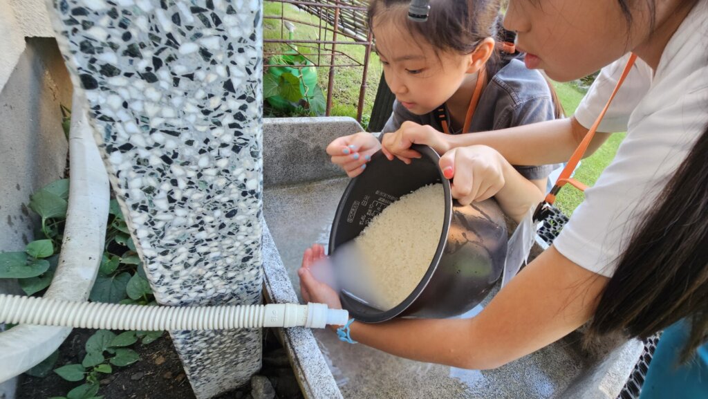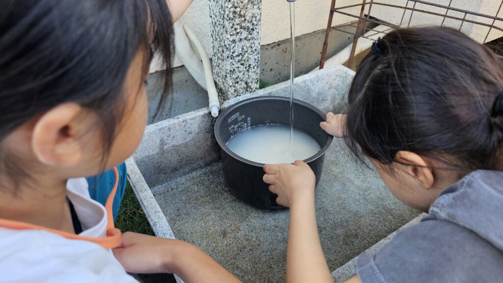 お米係の子は、計ったお米を研いで