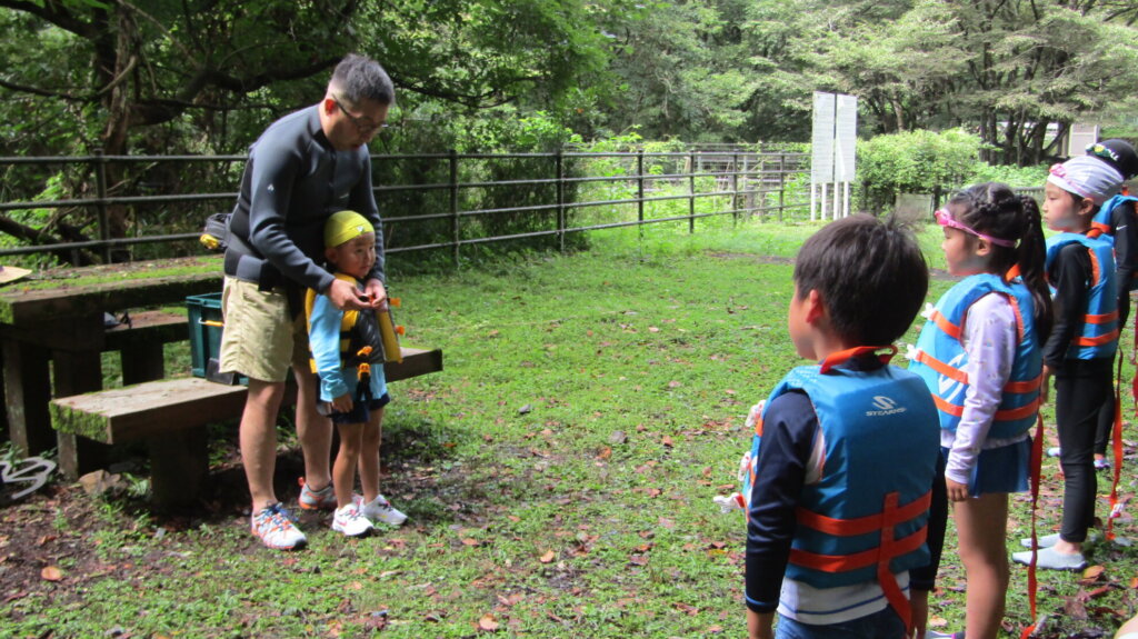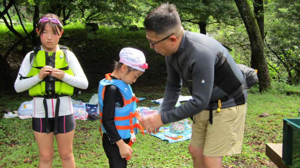 ちゃんと着用出来ているか、リーダーにチェックをしてもらったら川へ降ります。