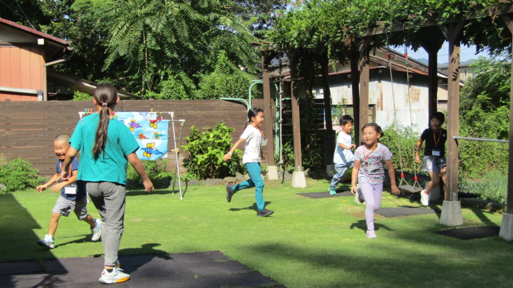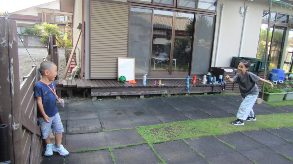 午後はドラム缶風呂の入浴体験を予定していましたが、今回は希望する子がいなかったので自由時間!子ども達と相談して外遊びをすることに♪