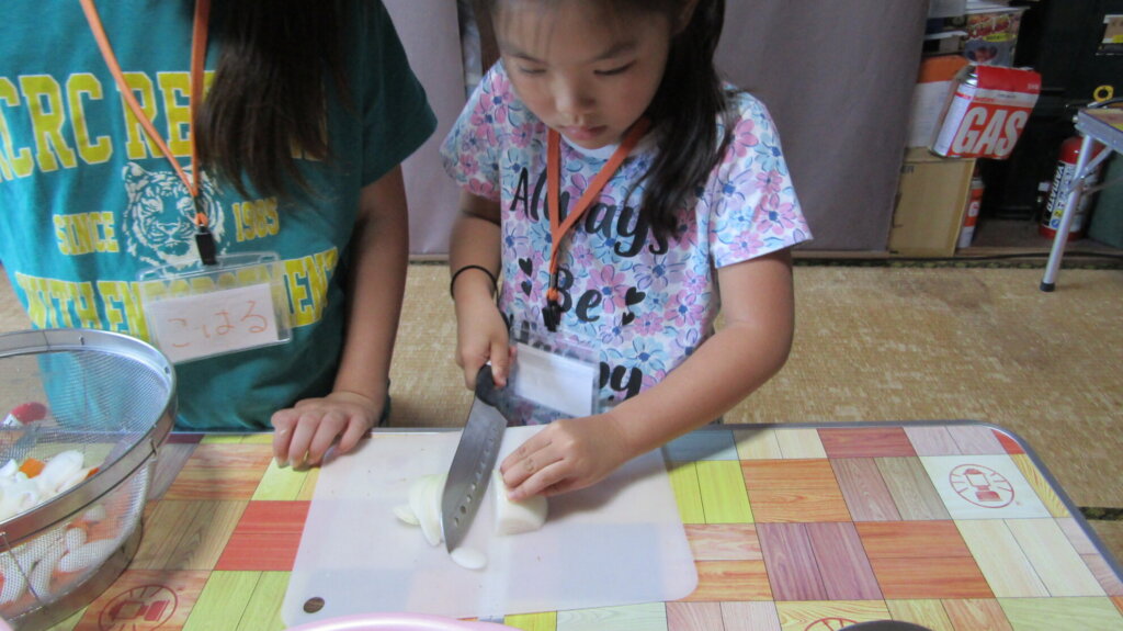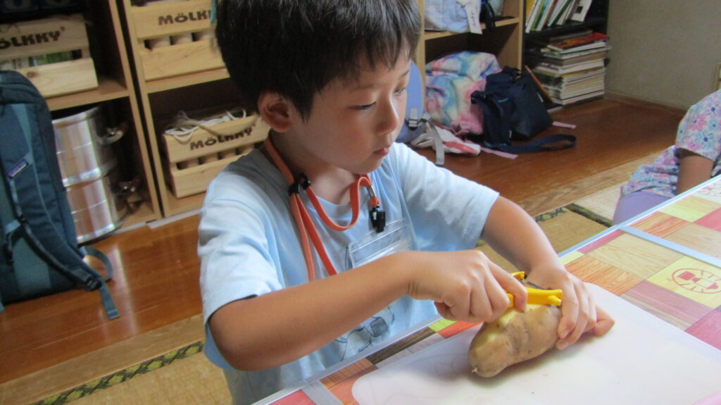 野菜を切る係の子は、ピーラーで皮をむいたり