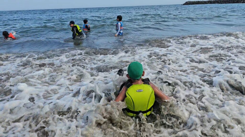 波打ち際で新しい遊びを発明した子も!(*^^*)