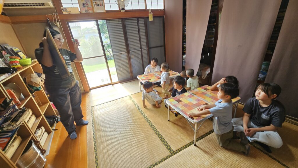 さらに子ども達の背丈より大きくなっている里芋の葉も随分と大きくなってきました!