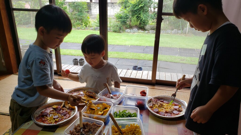 好きな具材(畑で収穫した野菜も入っています♪)をトッピングしたら