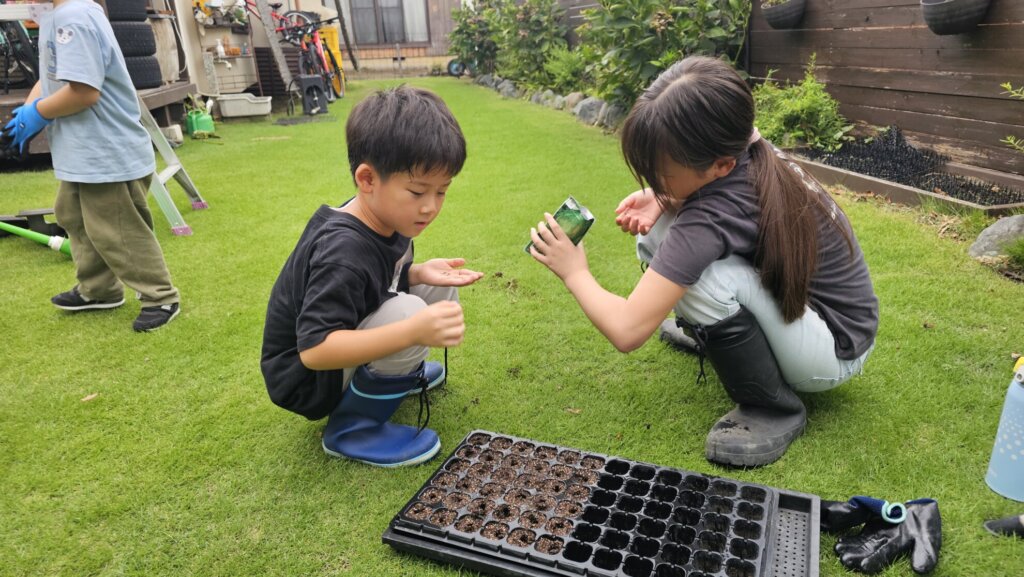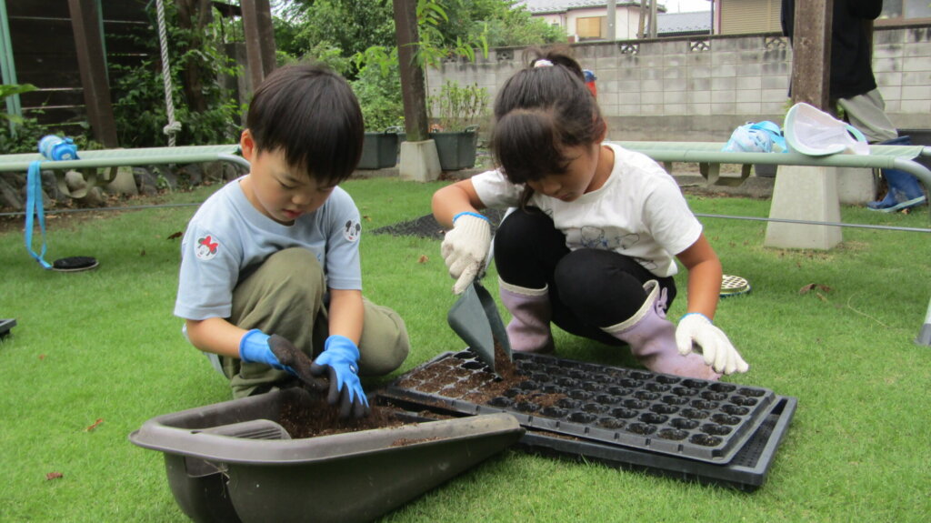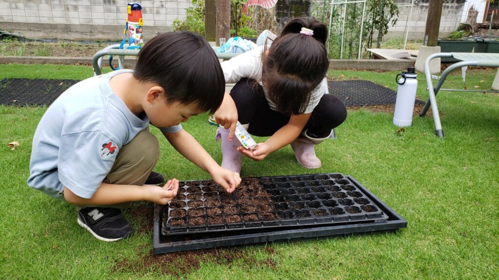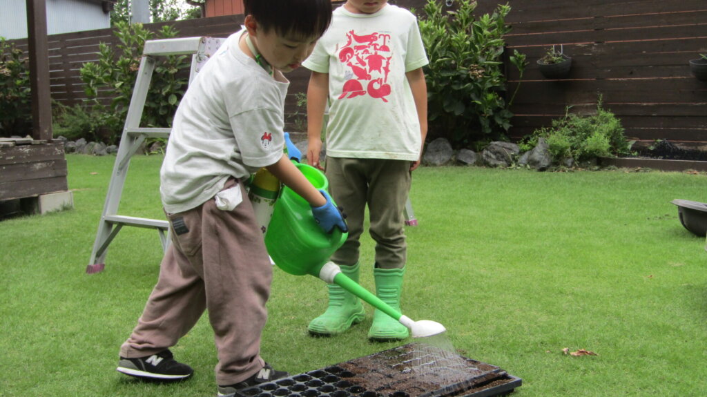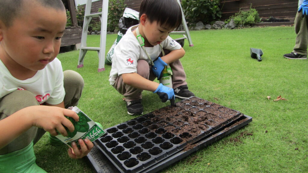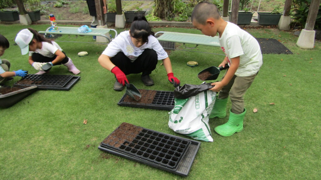 当初は8月中に行う予定でしたが、高温で苗を作っても溶けてしまう恐れがあるため、今季は日程をずらしての種植え。まだ、少し心配な気温高なのですが^^;