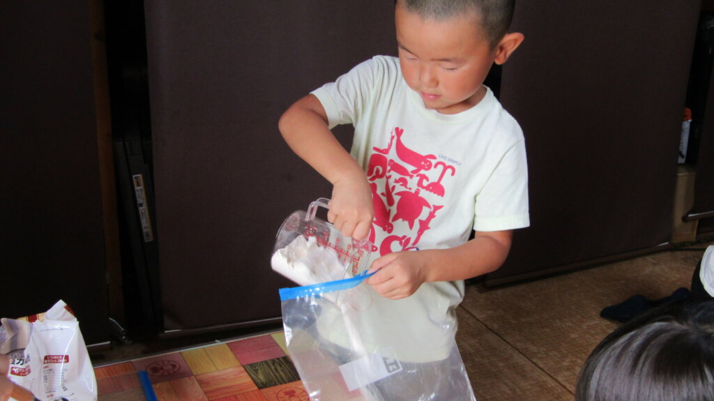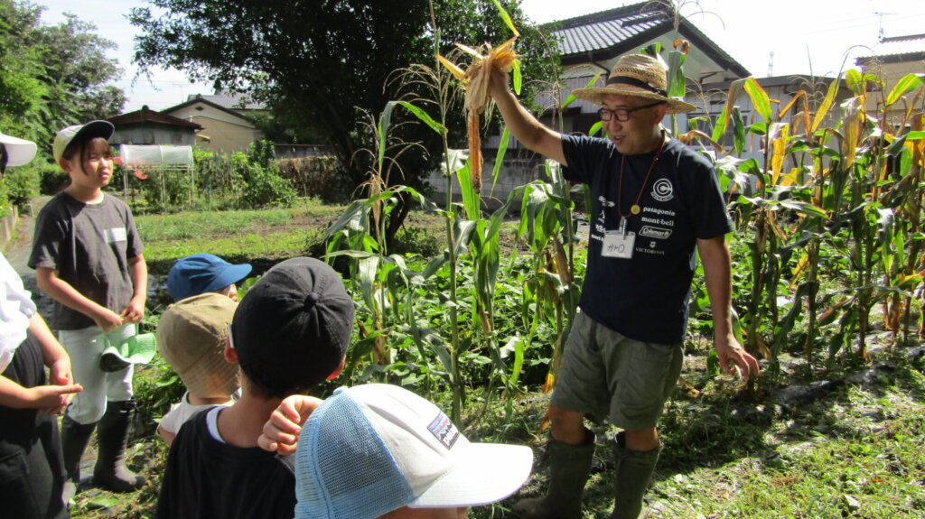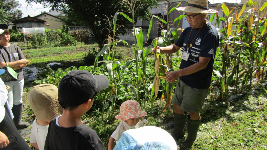 「あ~トウモロコシ!」大人の身長より大きくなっているトウモロコシについている実を取って皮を剥いてみると・・・