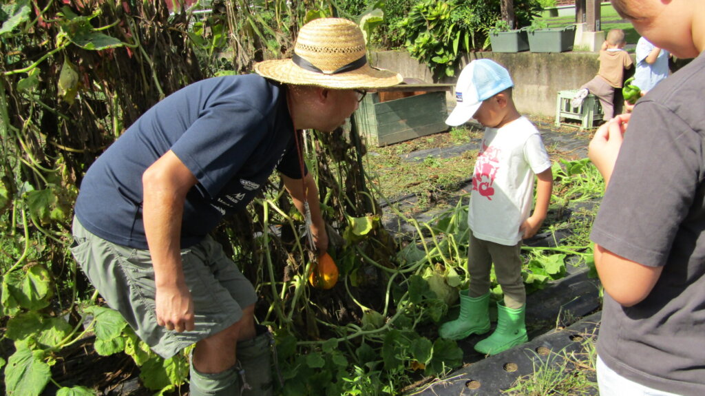 こちらは・・・オレンジ! サラダカボチャ(コリンキー)です(*^^*) 次回のカボチャランタンで使うよ~ 野菜たちがどの様に育っているのか?みることができました。
