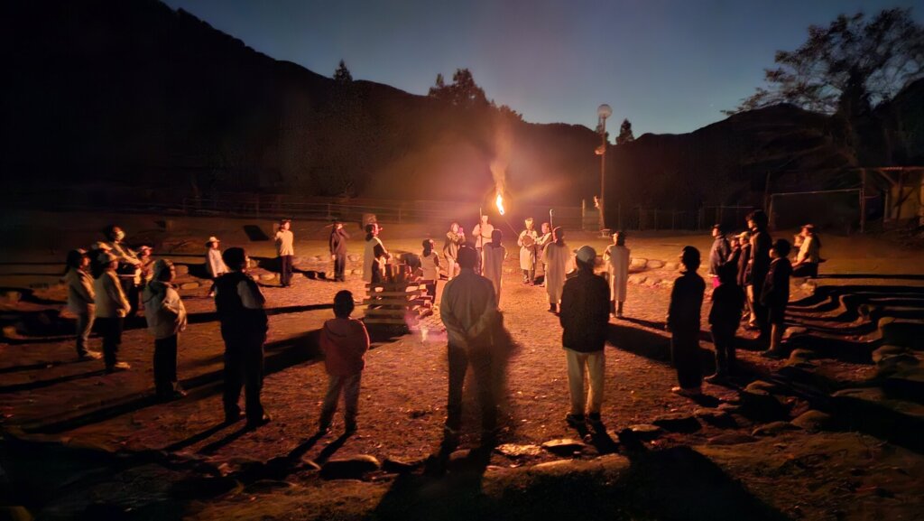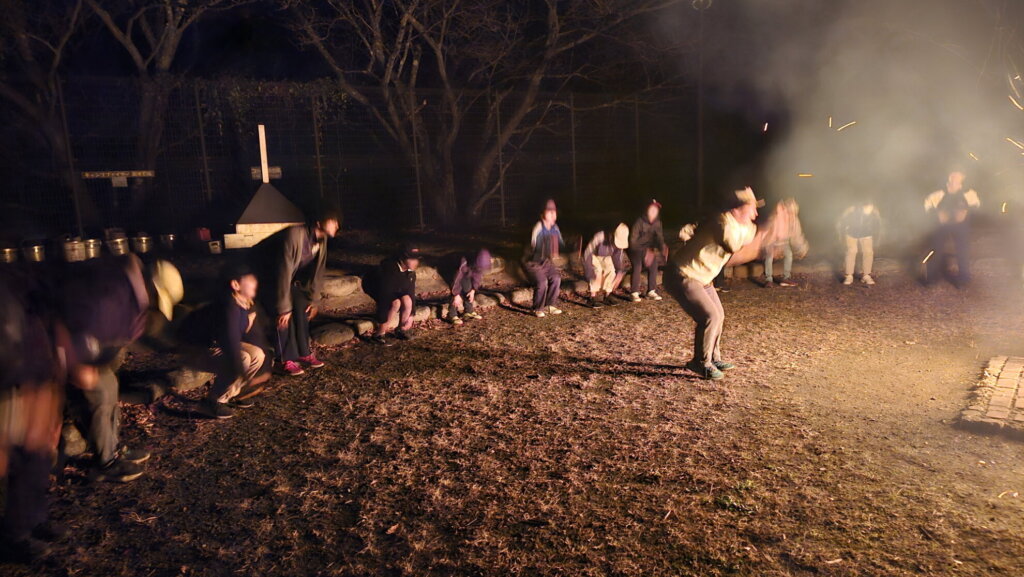 受託事業 2025年11月15日 今日は昨年に引き続き、児童心理治療施設青い鳥ぐんまからのご依頼でキャンプファイヤーを行ってきました。 「青い鳥ぐんま」は、様々な環境上の理由により家庭や学校での生活への適応が困難になった児童を対象に、社会生活に適応するために必要な心理に関する治療、及び生活指導を主として行う施設で 今回も、その一環で週末の野外活動体験の一コマをお手伝いさせて頂きました。 大きな火を囲んで、歌ったり、踊ったり、皆さんに楽しんで頂きました♪ 活動レポート