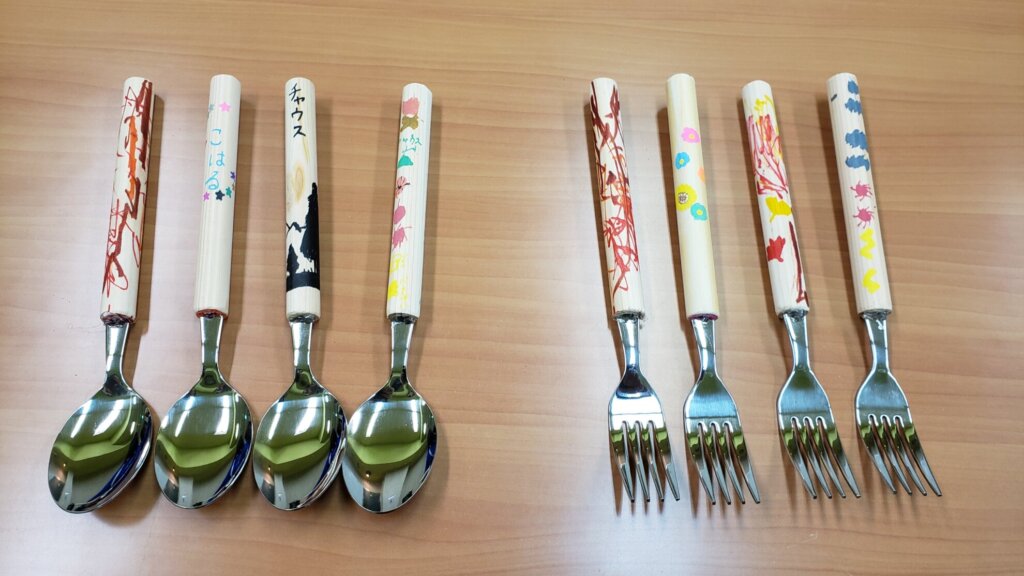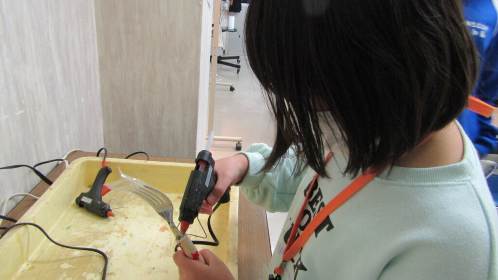 スプーン・フォークの部分をホットボンドでしっかりくっつけたら