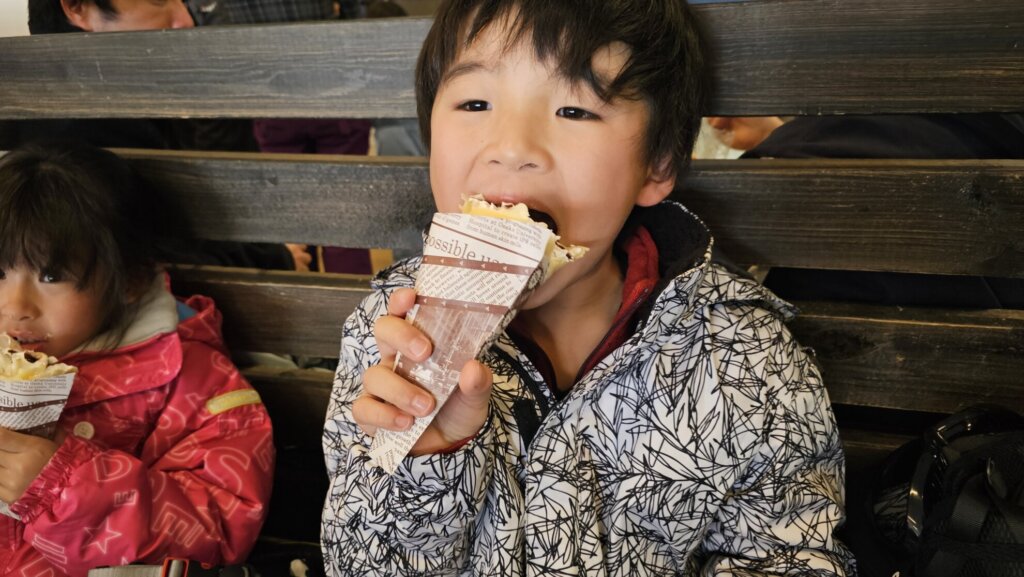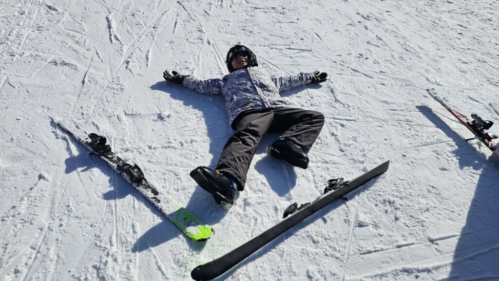 「疲れた~!」と、初めてスキーにチャレンジする子は休憩を入れながら