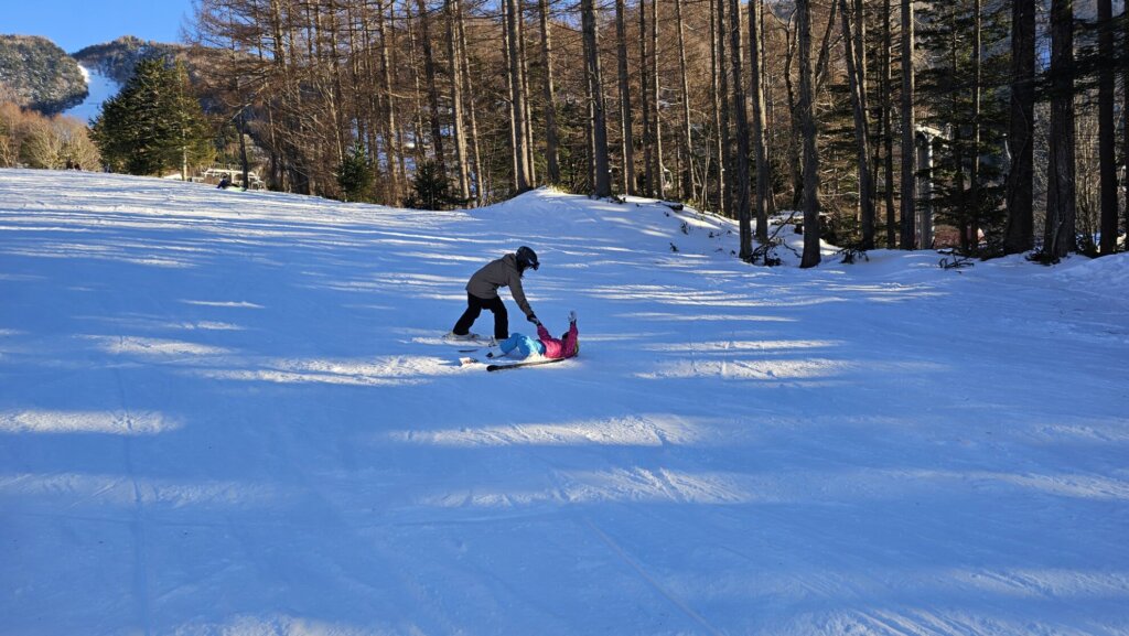 何度か転んでしまいましたが、滑れる子に助けてもらって^^;