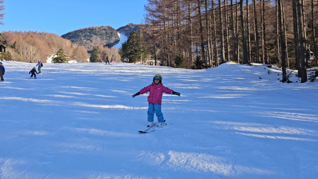 緩やかな斜面でハの字でしっかり止まる練習を!
