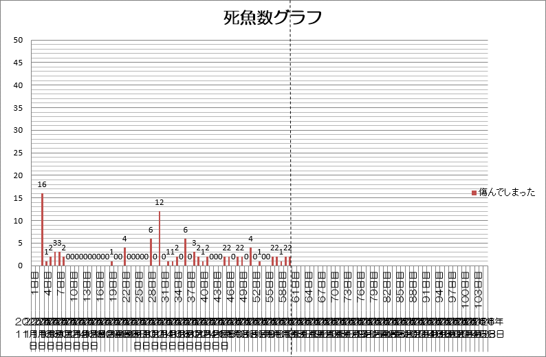 餌を与え始めると死魚が多くなるのは例年通りなのですが、少しでも多くの稚魚を川に放流できるように