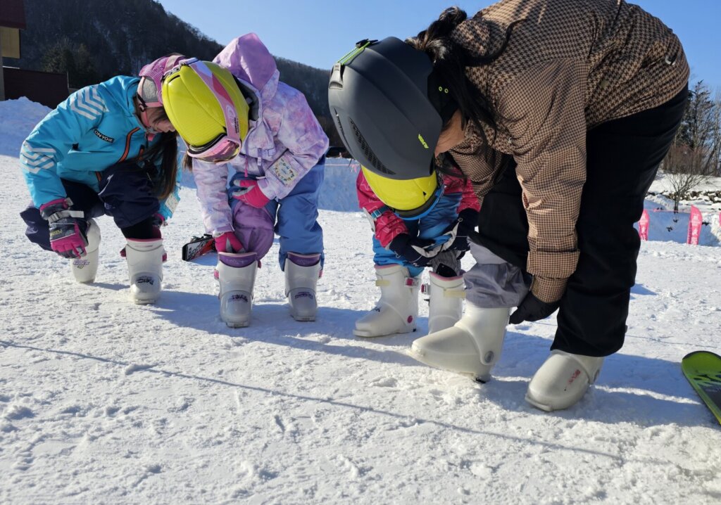 ブーツを履いて自分でしっかり締めて、リーダーにチェックしてもらったら