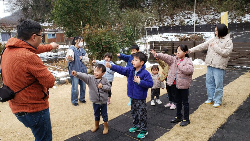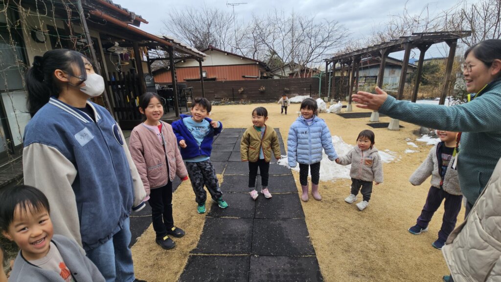 簡単なゲームをしながら、みんなの緊張をほぐして・・・