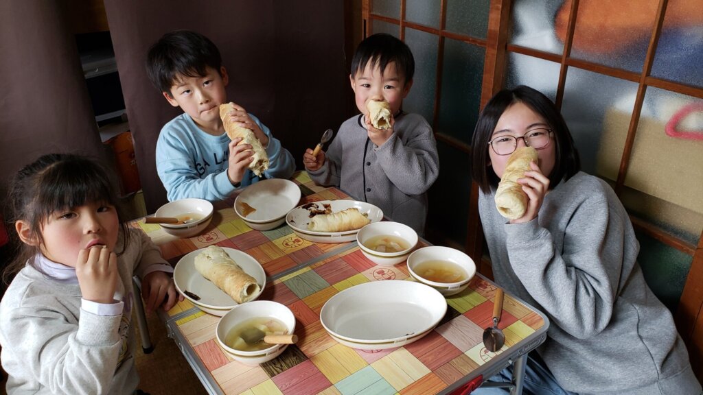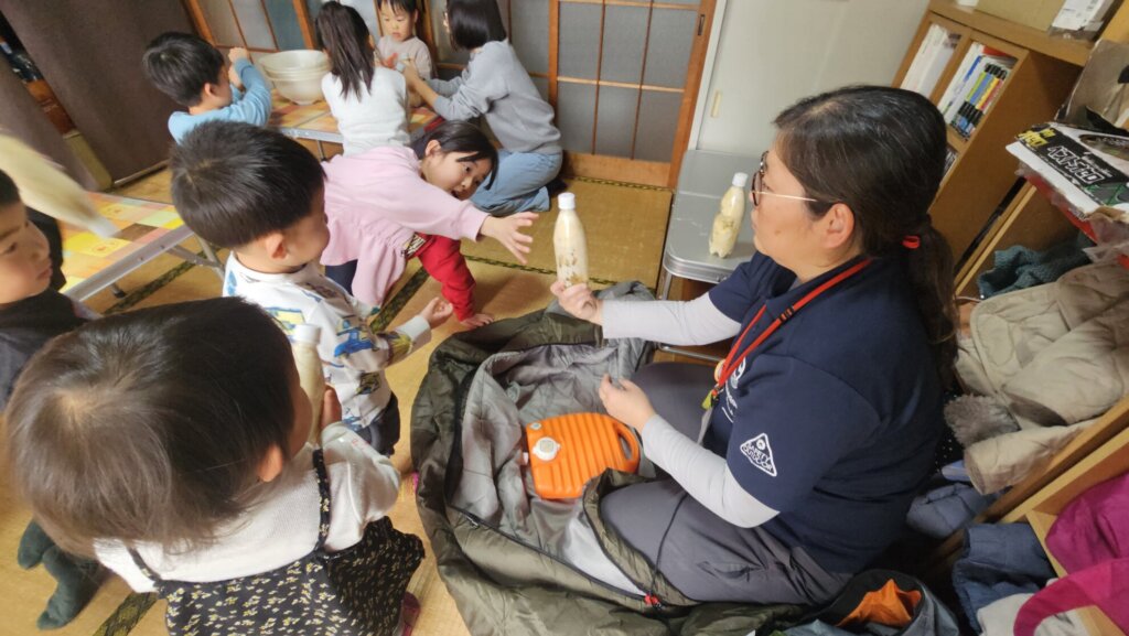 室内へ入り、手洗い・消毒をしたら、今回のテーマでもある「焚き火パン」の生地づくりをスタート!