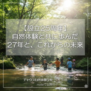 「冬休み子どもキャンプ」の参加受付をはじめました! 今年の冬は、お子様の「やる気」と「生きる力」を育む冒険へ! 例年「冬は寒くて運動不足になりがち・・・」チャウス自然体験学校の冬休みキャンプは、寒さを活かしたあそびや伝統 … [続きを読む]