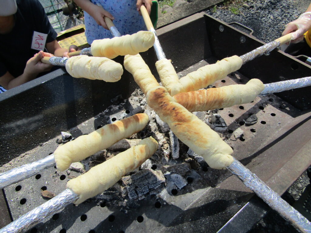 焚き火で焼くと、全体が焼けるように自分で生地をまわす必要があるけど、焼き色がつく様子を見ながら焼けるから、ワクワク感があるよね!また一緒に作ってみようね♬