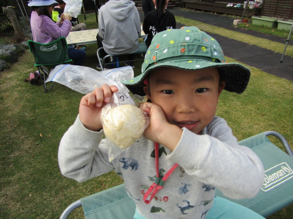 家でパン作りをしたことがあるけど、焚き火で作ったのは初めてだった。焼くのに時間がかかったけど、焚き火があたたかくて、だんだん焼けていくところが見られたのが良かったです!